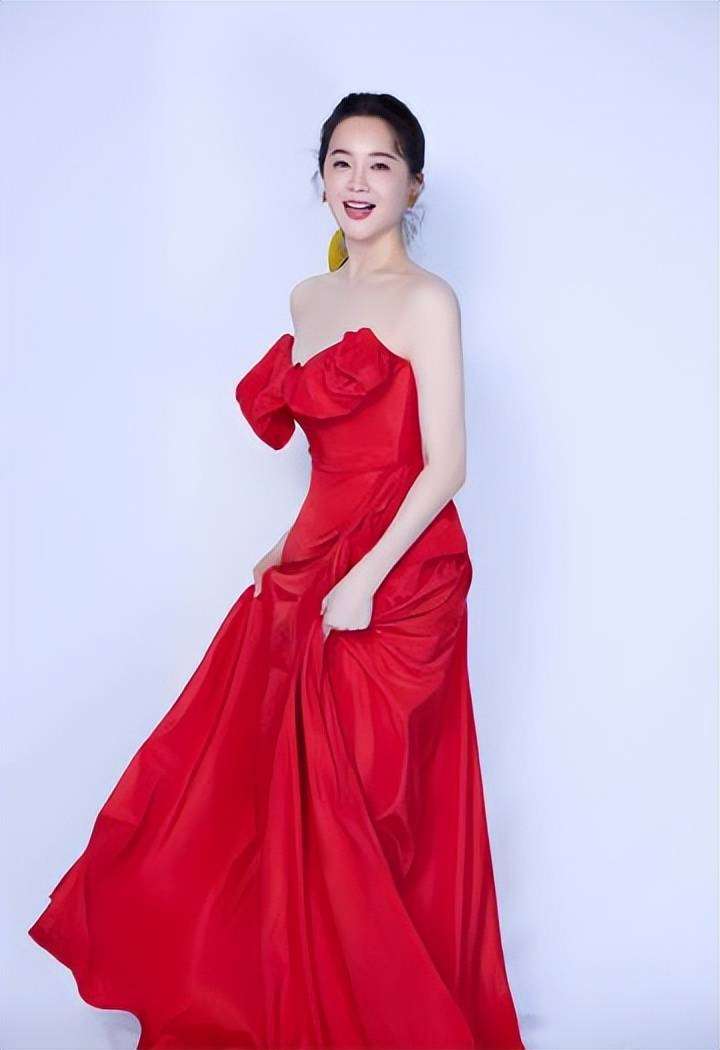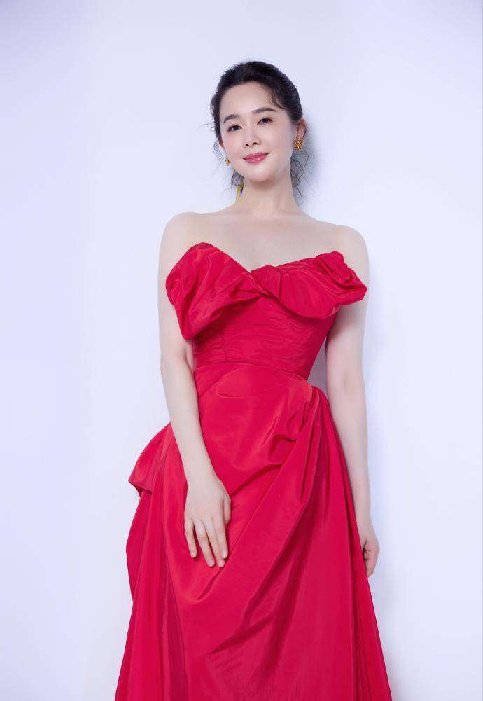 在配饰方面,左小青也搭配得恰到好处。她选择了简约的金色耳环,与红色裙子形成鲜明的对比,既不会过于张扬,又能为整体造型增添一丝奢华感。她的发型干净利落,将头发盘起,露出光洁的额头和修长的脖颈,进一步突出了抹胸裙的设计亮点,同时也展现出一种成熟女性的优雅气质。