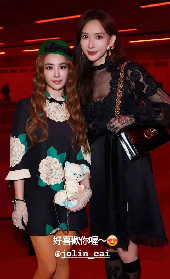 3月10日林志玲在个人社交账号晒出了和蔡依林的合照,配文中大方表白:好喜欢你喔!照片中二人在秀场肩贴着肩的站在一起,很是养眼,据悉,林志玲与蔡依林近日现身巴黎,在品牌时装周期间参加同场活动。