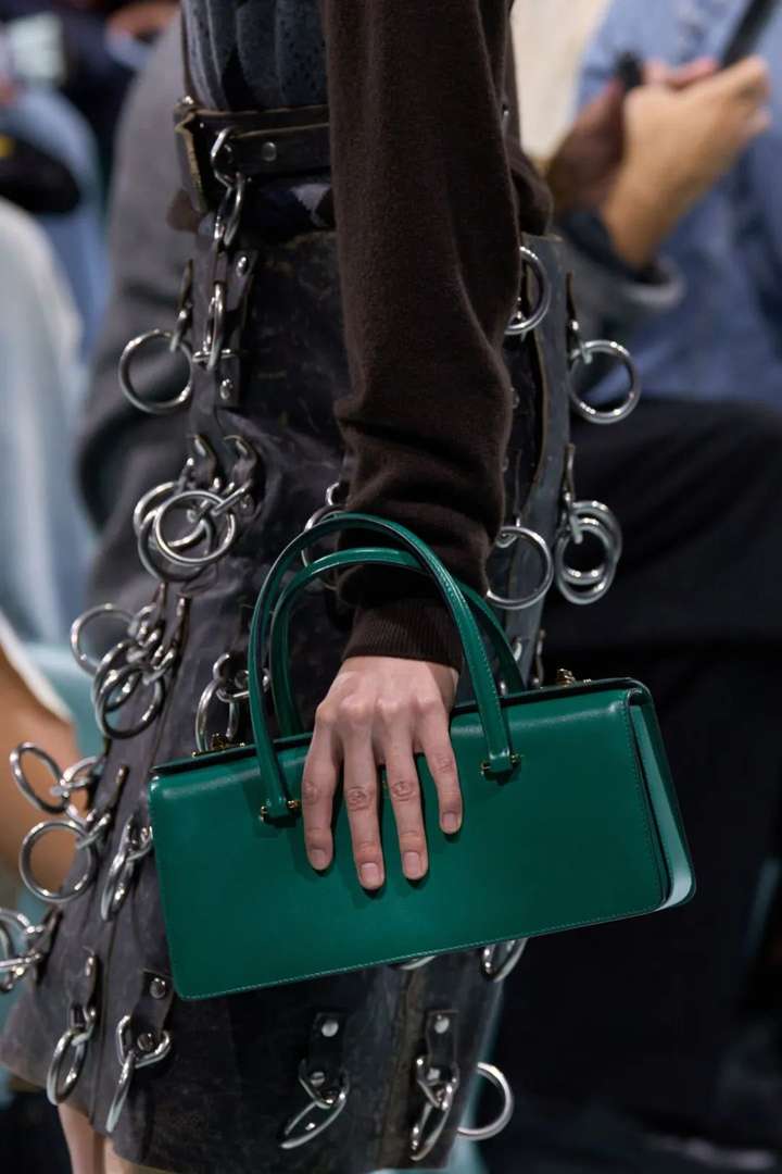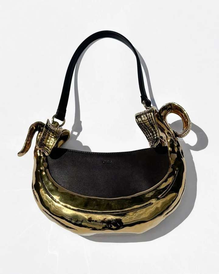论实用性,还得是这些表面不平滑、十分粗旷的金属链条“香蕉包”!有种手工打磨出来的质感,看上去精致有辨识度,预计会成为今夏的“黑马”包款。 ← 滑动浏览