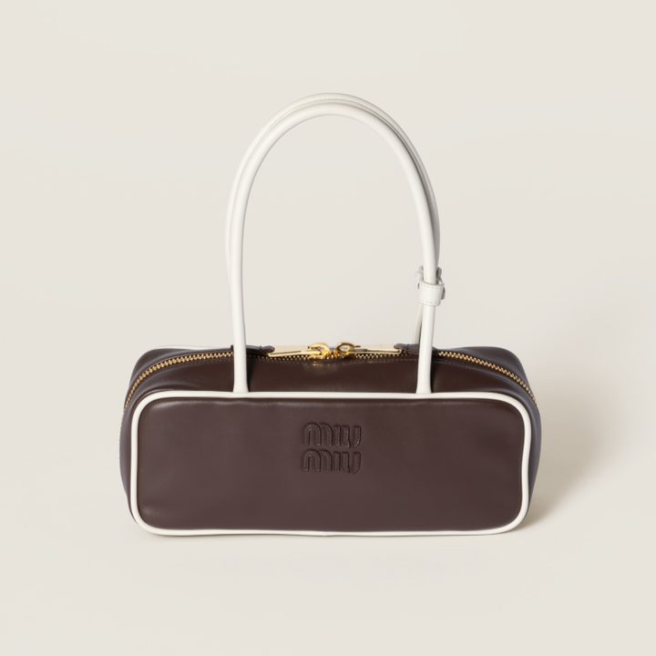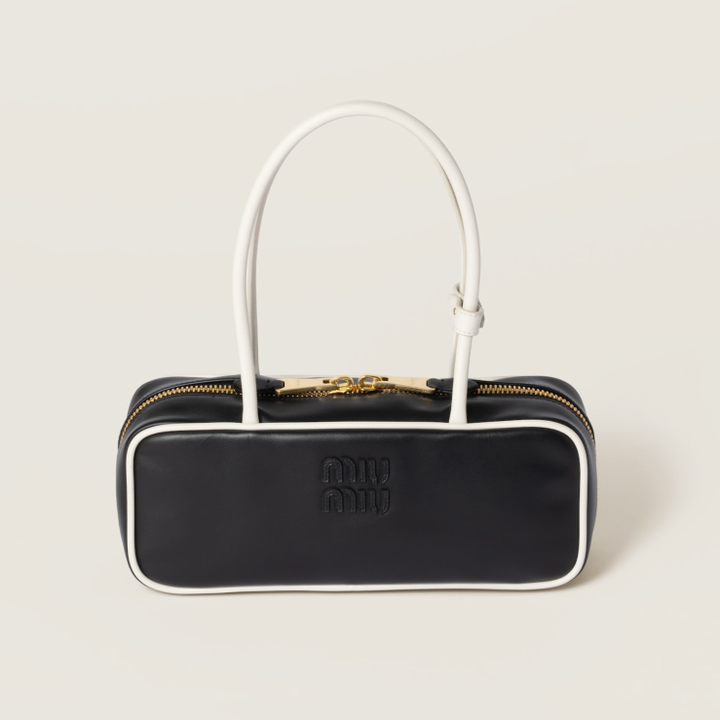 当红“炸子鸡”Miu Miu,本季给热卖的Wander、Arcadie、Beau来了个新升级,全都加上了一圈白色的装饰边,达到一种既2D又3D的漫画效果,可可爱爱。 其中表现最出色的是这只Beau保龄球包,配合长长的耳朵手柄,复古摩登,一秒回到80年代。