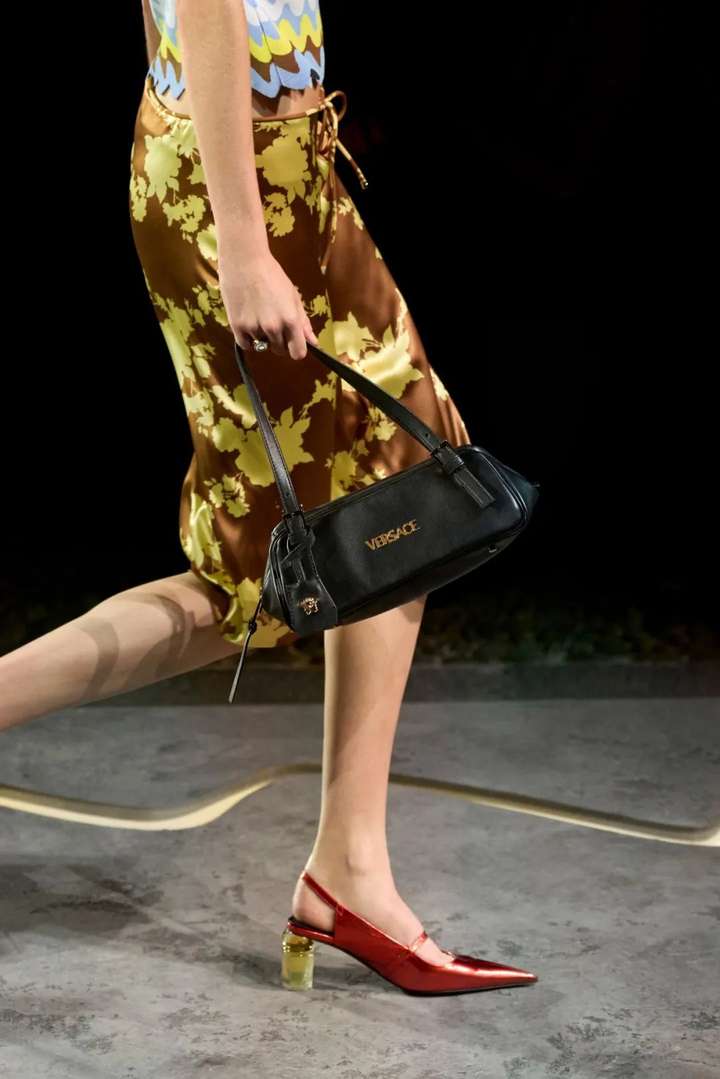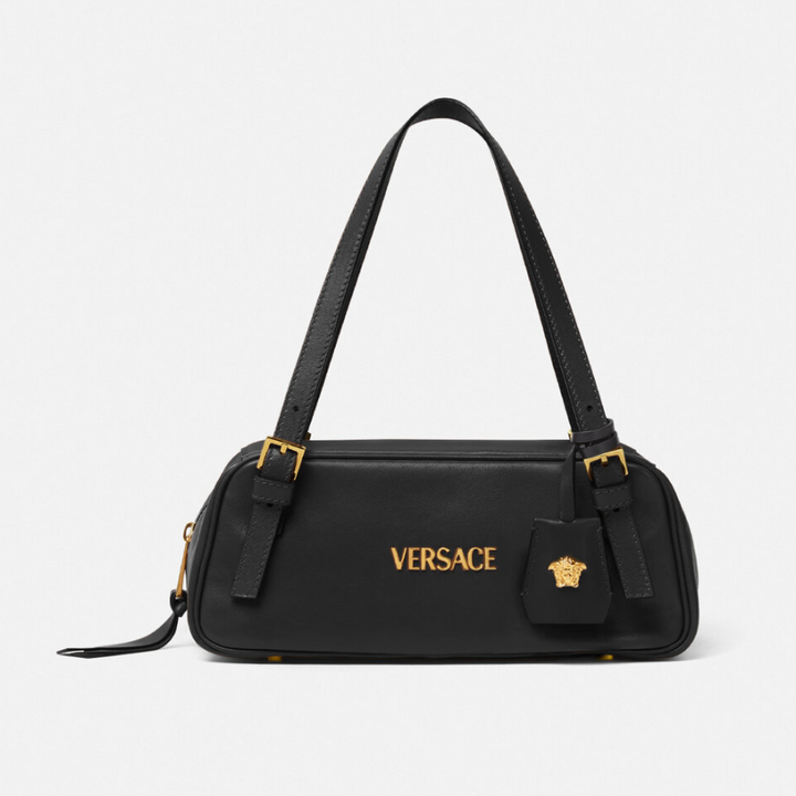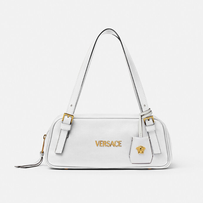 在俏皮和正式之中取得一个平衡,可以看看Versace Tag保龄球单肩包,长长扁扁的造型,更有如今大势“East-west Bag”的风骨。 ← 滑动浏览